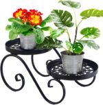 - Unique Design: Metal plant stands indoor. The S-shaped curved support frame and the disc with exquisite hollow pattern design are stable and full of simple retro and modern style. Use the 2 Tier tray to decorate the potted plants, plant rack makes your home full of nature, fashion, warmth and elegance.For storage or decor