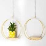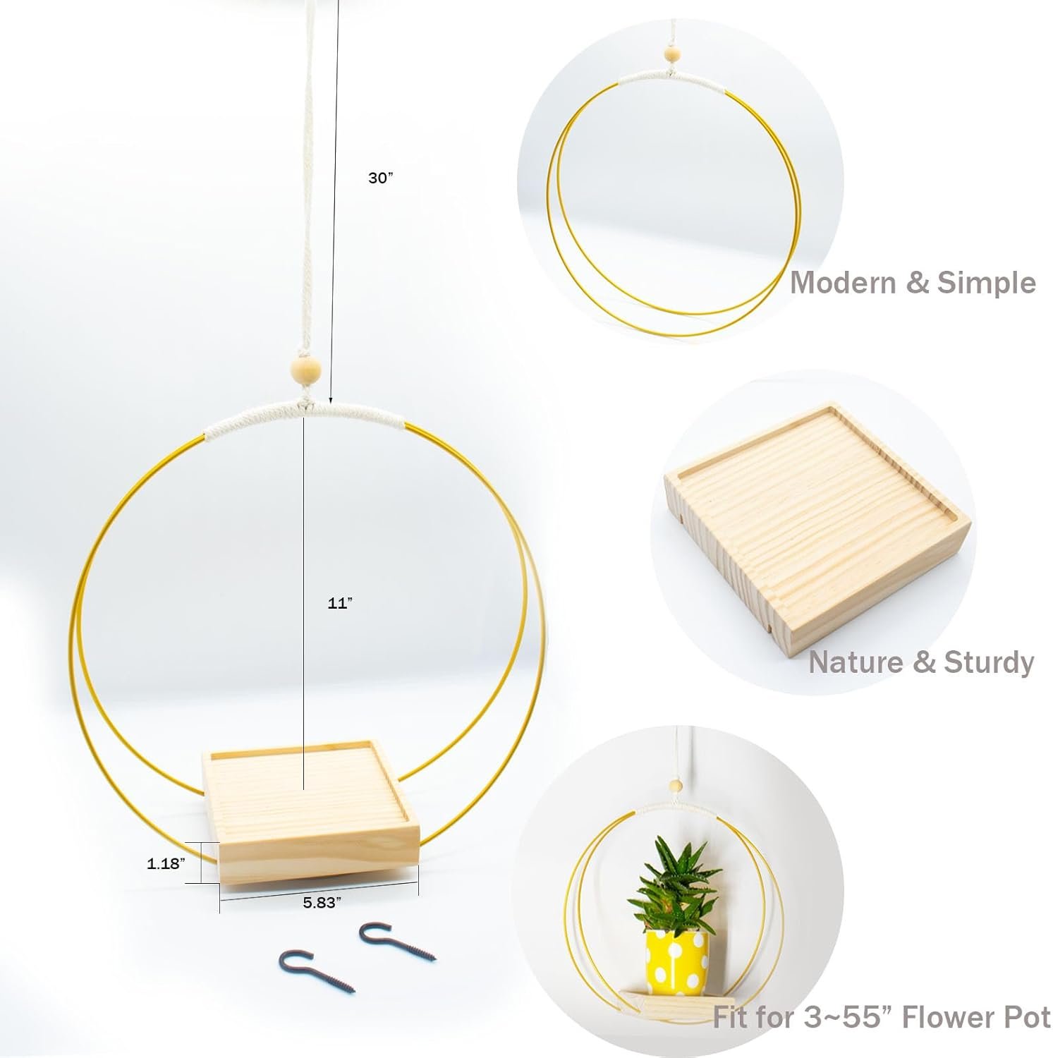 - Adjustable Size: With a 12.59″ diameter circle and 5.83“ wood base, our metal hanging shelf is suitable for 3″-5.5″ flower pots. With a rope length of approximately 30 inches, this hanging planter can be adjusted to fit any space, from walls to windows to rooms.