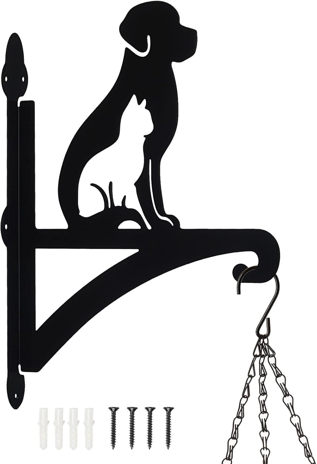 - Stylish Retro & Artsy Design: Depicted here in this high-quality iron hanging basket bracket, this beautifully detailed the silhouette of a dog with a cut out silhouette of a cat within its body. Wide base, thicker hooks and strong iron construction are no risk of bending or breaking under heavy weight.