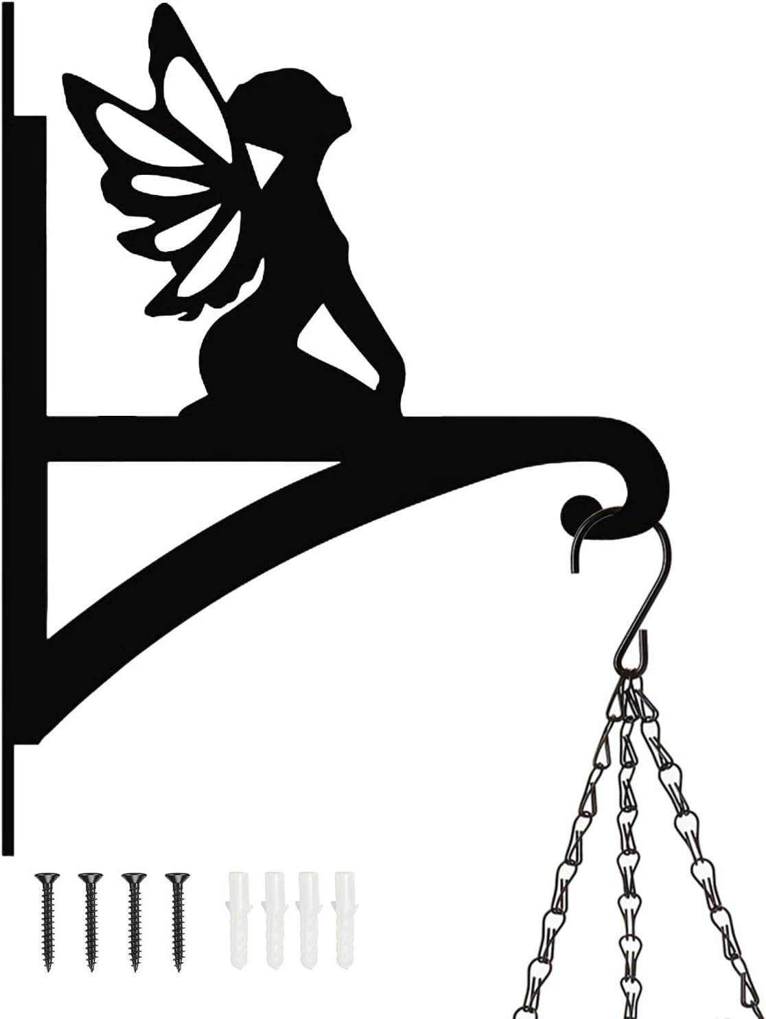- Stylish Retro & Artsy Design: Depicted here in this high-quality iron hanging basket bracket, this beautifully detailed the silhouette of a fairy kneeling and looking to the sky. Wide base, thicker hooks and strong iron construction are no risk of bending or breaking under heavy weight.
