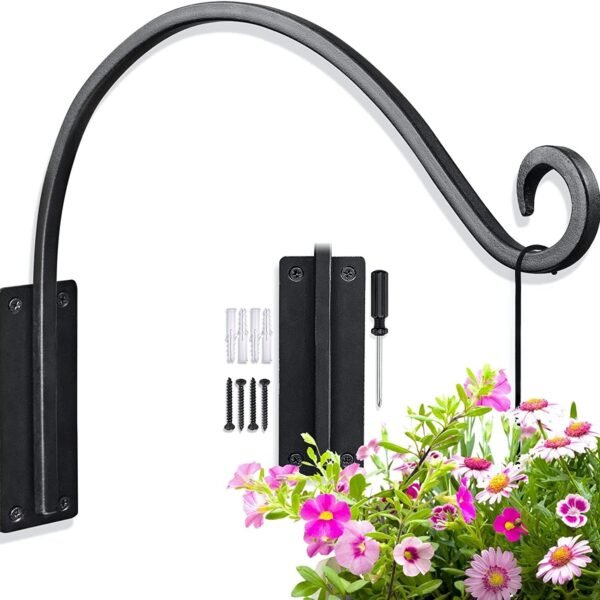 Wall Flower Rack Wrought Iron Hanging Flower Stand, Outdoor Balcony Hanging Basket Holder, Green Radish Hook Flower Pot, Spider Plant Holder-Support