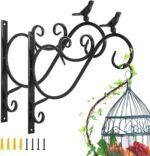 Wall Hanging Plant Bracket, 2 Pack 12-inch Retro Iron Shepard Hook for Flower Bird Feeder Planter Indoor Outdoor, Bird 01 – Spray Paint Black