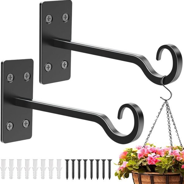 - The plant hook is very simple to install, and the flower basket hook is widely used. Just screw the screws into the location to be installed, such as wooden fences, trees, and even indoor and outdoor walls.