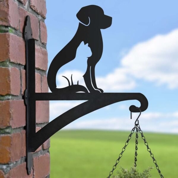 Hanging Plant Bracket Iron Heavy Duty Ornamental Cat & Dog Silhouette Wall Mounted Plant Hangers Outdoor for Flower Pot Lantern Bird Feeder Wind Chimes